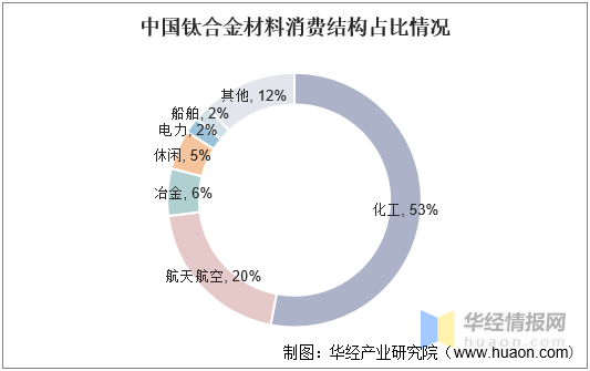 在國內鈦合金消費結構中,化工行業(yè)占比大,占比約為53%,航空航天占比第二,約為21%,遠低于50%左右的國際平均航空航天用鈦材比例,我國航空用鈦材市場還存在較大潛力。