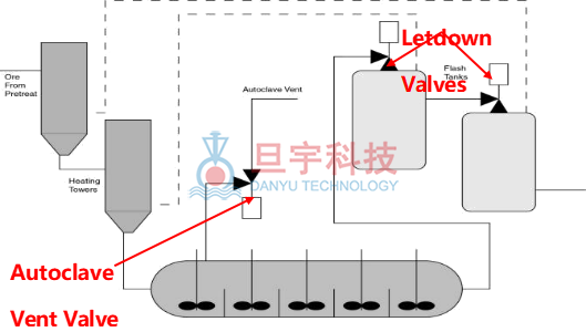 閃蒸角閥應(yīng)用在氧壓浸出車(chē)間高壓釜到閃蒸槽之間排料管上,是關(guān)鍵的流量控制閥門(mén),用于礦漿流量調(diào)節(jié),流體介質(zhì)特點(diǎn):酸性礦漿物料,含少量的氯離子和氟離子,較強(qiáng)腐蝕性, 含顆粒沖蝕性強(qiáng)、易結(jié)晶、含固量高及伴隨閃蒸和汽蝕現(xiàn)象;